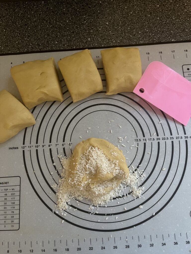 Aluatul se împarte în mai multe părți egale, în funcție de aromele dorite.
